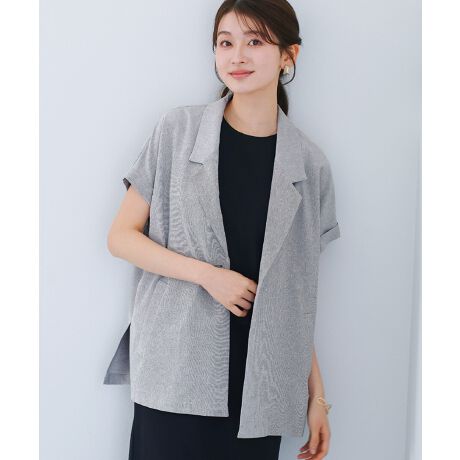 【接触冷感・UVカット・速乾・洗える】ライトシャンブレー・フレンチスリーブジャケット
