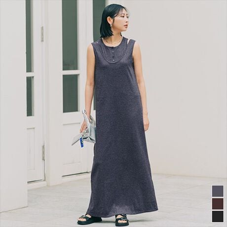 タンクトップとワンピースがセットになった、レイヤードワンピース。