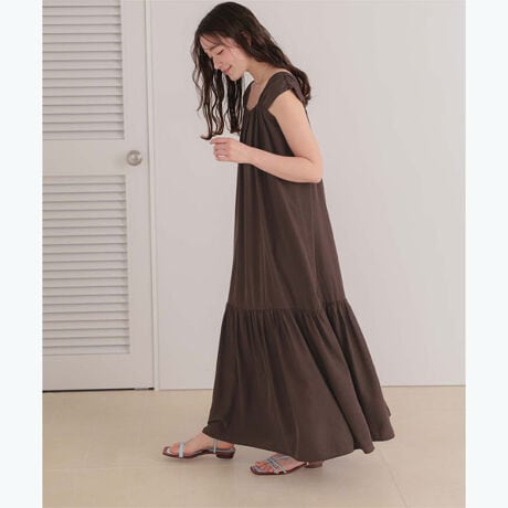 ・太めショルダーと華奢キャミ紐のレイヤードデザインが新鮮な2wayワンピース