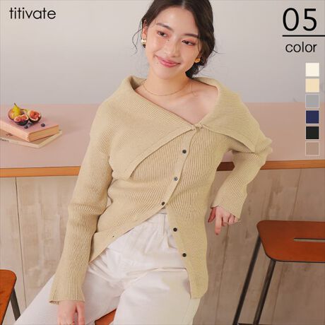 ・ショールのように肩にかかるデザインが印象的なニットトップス