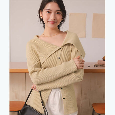 ・ショールのように肩にかかるデザインが印象的なニットトップス