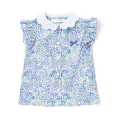 品のあるリバティ柄の生地を使用し、スカラップ襟と袖フリルが可愛い女の子用ブラウスです。