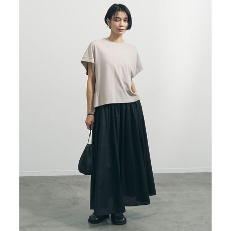 ■デザインシンプルながらも存在感のある、ボリューム感が魅力のギャザースカート。生地表面にはコーティング加工を施し、繊細なコットンながらもしっかりとしたハリ感をプラスしました。たっぷりと分量感があるので、シンプルなTシャツとの着合わせでも華やぎます。カジュアルなTシャツはもちろん、きれいめなブラウスとも相性抜群です。デイリーにもお出かけにも、季節を問わず活躍する一着です。嬉しいポケット付きです。
