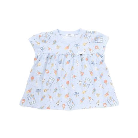 カラーごとに違った総柄デザインが楽しめて、思わずどれにしようか迷ってしまう女の子用半袖Tシャツ。
