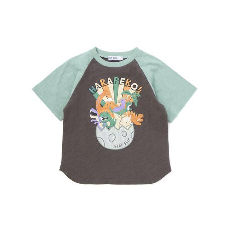 はらぺこ恐竜がいっぱい!男の子用ラグラン半袖Tシャツ。