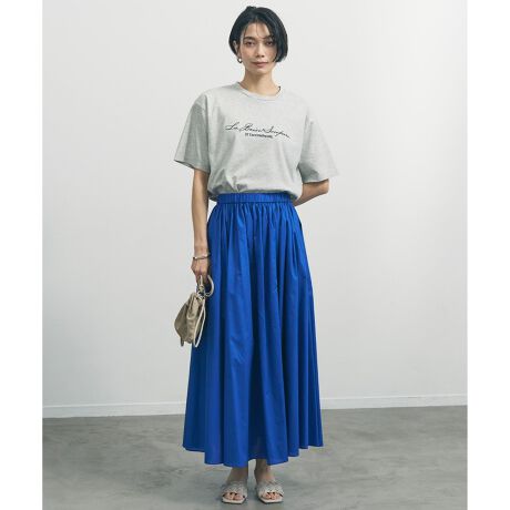■デザインシンプルながらも存在感のある、ボリューム感が魅力のギャザースカート。生地表面にはコーティング加工を施し、繊細なコットンながらもしっかりとしたハリ感をプラスしました。たっぷりと分量感があるので、シンプルなTシャツとの着合わせでも華やぎます。カジュアルなTシャツはもちろん、きれいめなブラウスとも相性抜群です。デイリーにもお出かけにも、季節を問わず活躍する一着です。嬉しいポケット付きです。