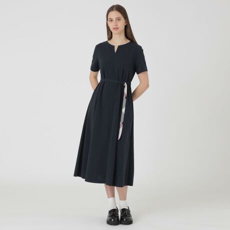 すとんと着るだけでスタイリングが決まる、カットソーポンチ素材のドレス。