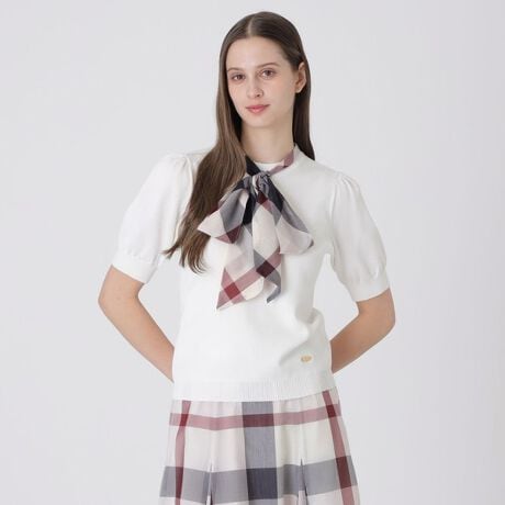 取り外し可能なリボン付きで、スタイルに合わせて表情を変えられる一枚です。