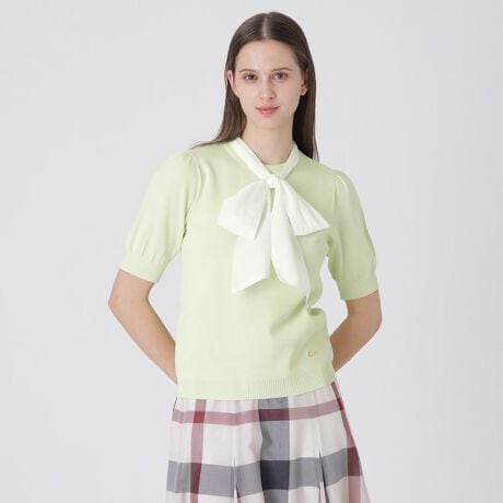 ◆首元リボンがポイントのニットプルオーバー