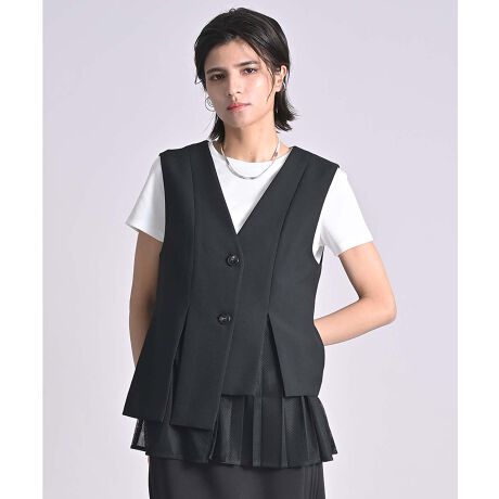 メッシュプリーツペプラムジレ