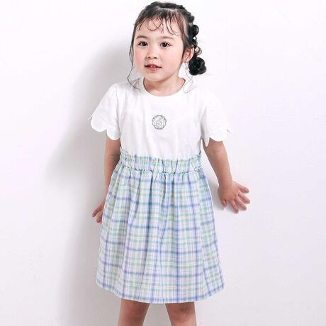スカート部分は軽やかなマドラスチェック素材で、季節感のある装いを楽しめます。