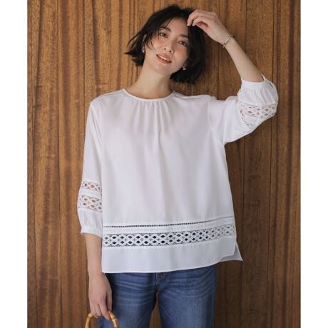 刺繍レースが春の空気を呼び込む、やわらかくナチュラルな風合いのブラウス