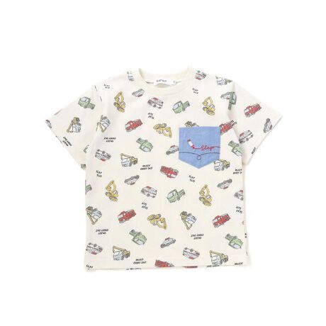 オフホワイト系は、はたらくくるまをモチーフにした総柄デザイン。