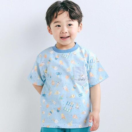 カラーごとにちがう総柄デザインに、思わずどれにしようか悩んでしまう男の子用半袖Tシャツ。