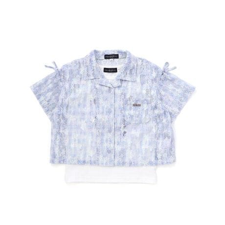 シャツには、涼しげな透け感と独特の凹凸が魅力のタイダイレース素材を使用。