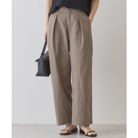 さらりと涼しく決まる大人のリラックスワイド表面に凹凸のあるサッカー素材を使用し、汗ばむ季節でも快適な穿き心地を叶えてくれる一着です。軽やかな生地感で動きやすく、リラックス感がありながらもきちんと見えを両立します。ワイドシルエットが脚をすっきりと見せ、バランスの取りやすいスタイリングに導きます。シンプルで合わせやすく、トップスを選ばずコーディネートの幅が広がるのもポイントです。デイリー使いはもちろん、きれいめにもカジュアルにも着回せる万能なパンツです。