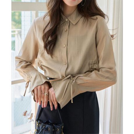 袖口のリボンディティールが女性らしさをプラスし、きれいめにもカジュアルにも着まわせる一着です。