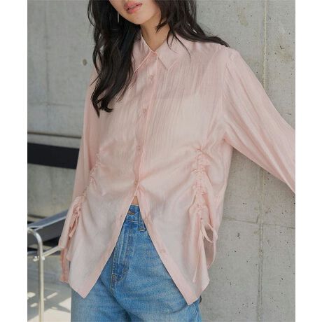 サイドに寄せたギャザーデザインが、着こなしにほどよい立体感を添えるデザインシャツ。
