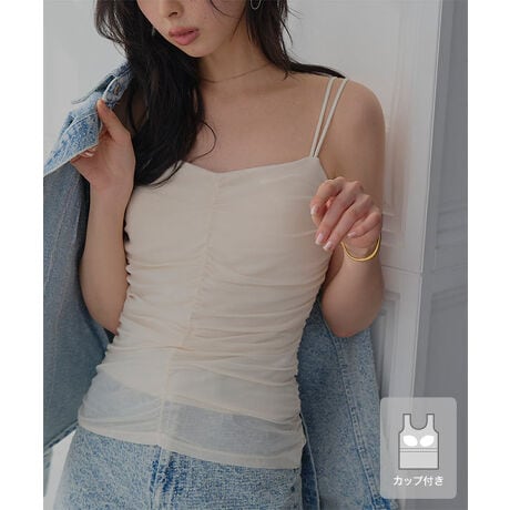 カップ付きシアーシャーリングキャミソール [C7804]