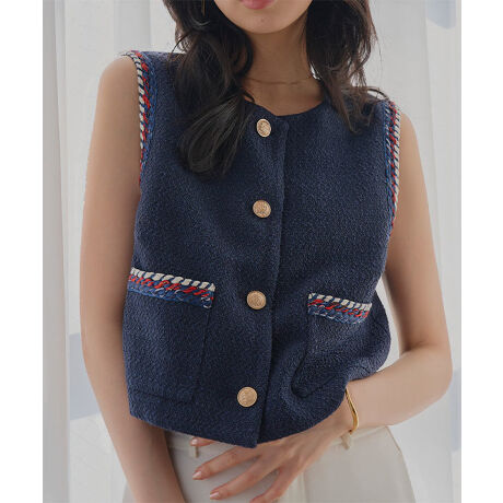 エレガントで上品な雰囲気もたらすツイードベスト。