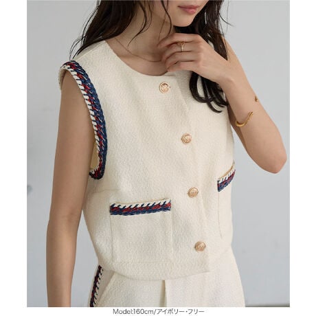 エレガントで上品な雰囲気もたらすツイードベスト。