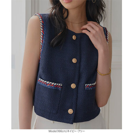 エレガントで上品な雰囲気もたらすツイードベスト。