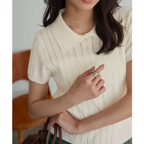 アイレットケーブルニットポロトップス [N1346]