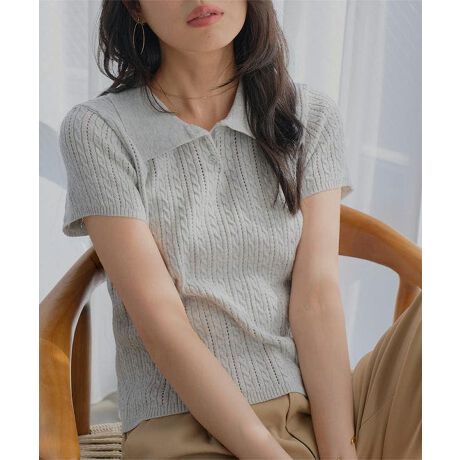 衿のボタンは開けると抜け感をもたらし、閉じるとクラシカルな雰囲気で着こなしていただける春夏ニットです。