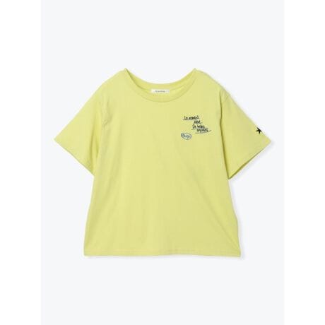 手書き風のロゴ刺しゅうを施したポップなデザインがアクセントをプラスするTシャツ。