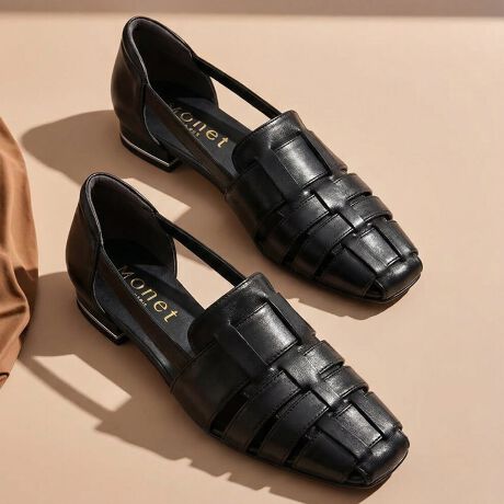 抜け感のある編み込みデザインが目を引く、大人のためのグルカ風パンプス。