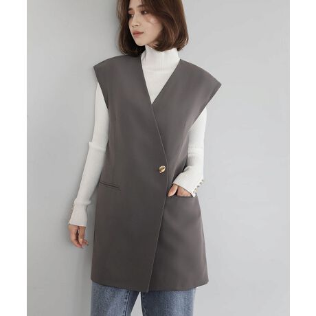きれい見えするノーカラージレに遊び心をプラスしたデザイン。