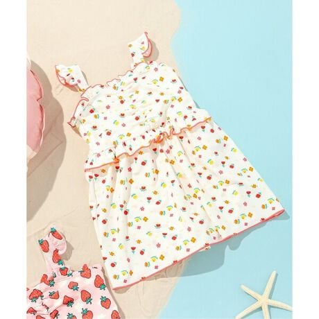 イチゴとお花柄の総柄が、目をひくワンピース水着。
