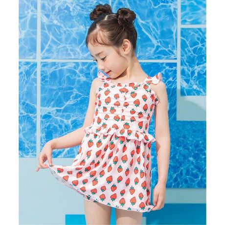 イチゴとお花柄の総柄が、目をひくワンピース水着。
