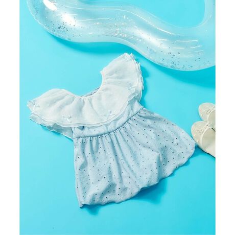 お顔まわりを、ぐるりと彩る大きなレースフリルが一番のポイント。
