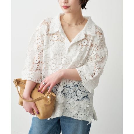 ポリエステル100%のケミカルレースを使用し、立体感のあるフラワーモチーフの表現が実現。
