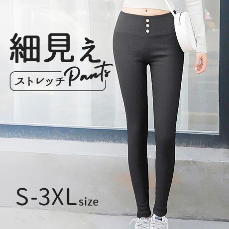 レギンスパンツ スキニーパンツ 通販 極細 スキニー 細見え レギンス パンツ レディース 黒 ブラック ストレッチ ウエストゴム ゴールドボタン シンプル 無地 カジュアル オフィス pt-033-0 ダイヤモンドハーツ ボトムス 女性 大人 婦人