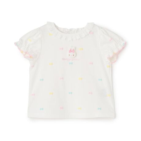 ウサギマスコットつき リボン柄 半袖Tシャツ