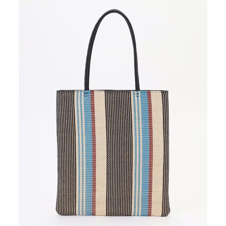 デザイン・ジュート風のナチュラルな素材感と配色ボーダーが夏らしい爽やかなデザイン・フェイクレザーの細い丸ハンドルで持ち心地のよい仕様・口開きがよく、荷物の出し入れがしやすい・A4サイズ収納可能でデイリー使いにも便利・内側にオープンポケット付きで、携帯や鍵の収納に便利・肩掛けもできる使いやすいデザイン