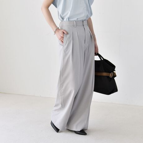 注目の素材、CALCULO(R)(カルキュロ)を使用したハイウエストワイドパンツ。
