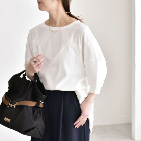 《予約》quaranciel:〈接触冷感/汗染み防止加工〉ドッキング Aライン カットソー