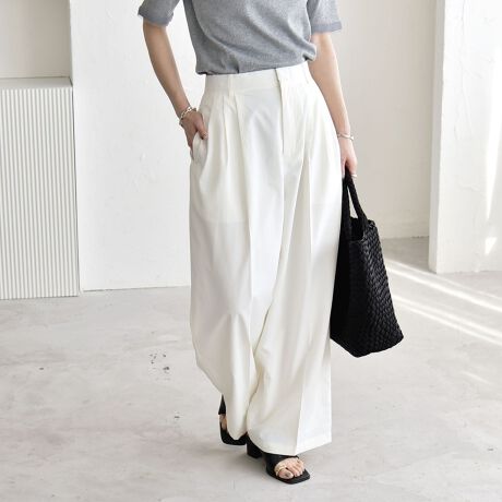 《予約》quaranciel:〈接触冷感/UVカット/吸水速乾〉3タック ワイド ストレート パンツ