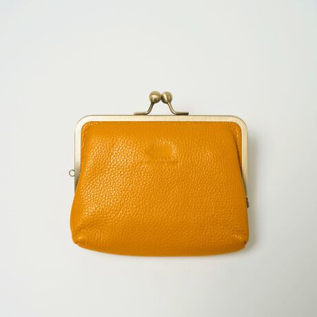 本革の風合いを楽しめる、使いやすいサイズのがま口ポーチ。