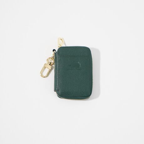 2タイプのキー収納にカード入れやカラビナフックなどがついた多機能なスマートキーケース。