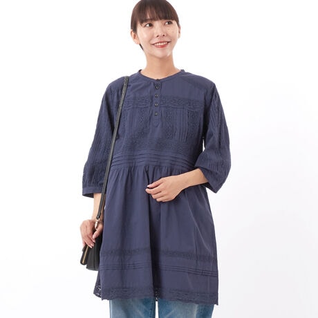 ローン×レーステープパッチワーク×天竺チュニックブラウス