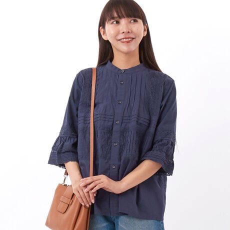 ローン×レーステープパッチワーク×天竺ピンタックブラウス