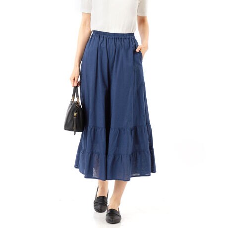 [型番:34160062]綿麻ボイルワッシャーを使用したティアードパンツ。ナチュラルなシワ感と軽やかな風合いが魅力で、ふんわり揺れるティアード切り替えが女性らしさを演出します。ブラウスやTシャツとのコーディネートはもちろん、ワンピースの裾からティアードのフリルを覗かせるスタイリングもおすすめです。季節感のある、リラックス感漂う一枚に仕上げました。ウエストはゴム&紐で快適な履き心地。裏地付きなので、一枚で涼しくご着用いただけます。