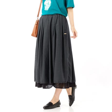 ポリエステル麻+コットンローン レイヤードスカート(裏地付き)