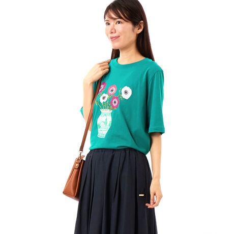 大きな花瓶に花が生けられた、マツモトさんらしい大胆なイラストをプリントしています。