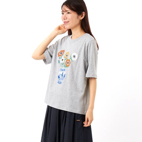 大きな花瓶に花が生けられた、マツモトさんらしい大胆なイラストをプリントしています。