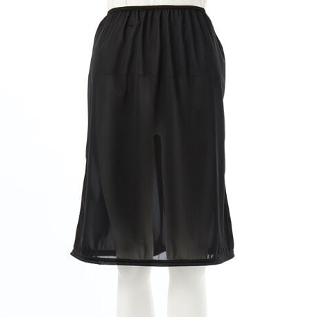 [型番:34970062]ポリエステルテトニットのペチコート。柔らかなニット素材で着心地が良く、適度な厚みで安心感があります。重宝する、とても便利なアイテムです。手のワンピースやスカートにプラスしてご着用ください。